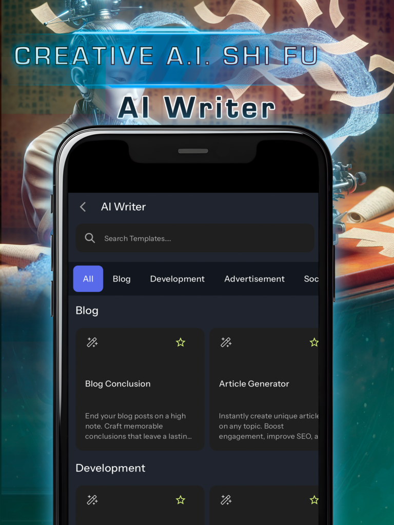 Beautiful content doesn’t have to be designed from scratch. Creative AI Shifu can create collections of AI Generated Artwork and engaging copy text that you can assemble to make your content impactful, meaningful and appealing.
